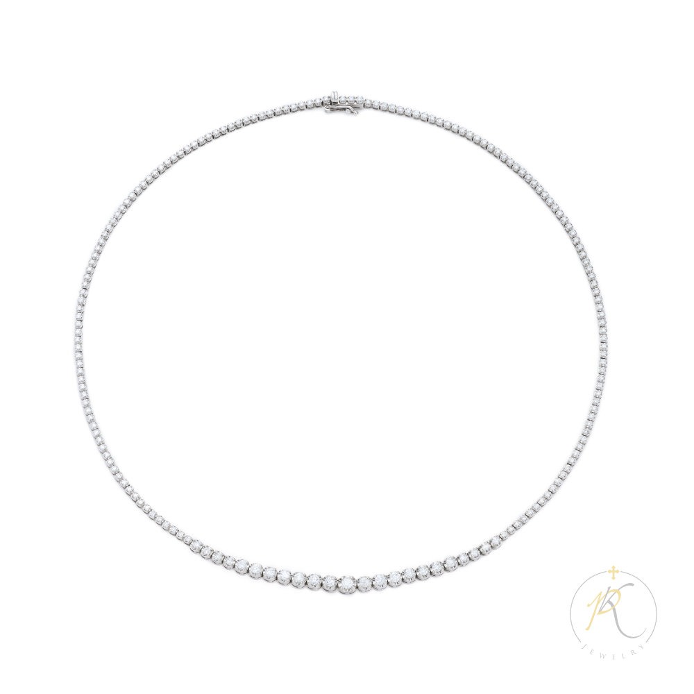 18K White Gold & Diamond Tennis Necklace – Graduated & Clasp Secured
